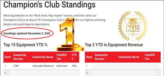 Every year, only selected dealers earn their right to be FP Champions and part of the prestigious Champions Club. For many, many years, Automated Mailroom has been a Champion, typically finishing up within the Top 10 of these 175 dealers nationwide.